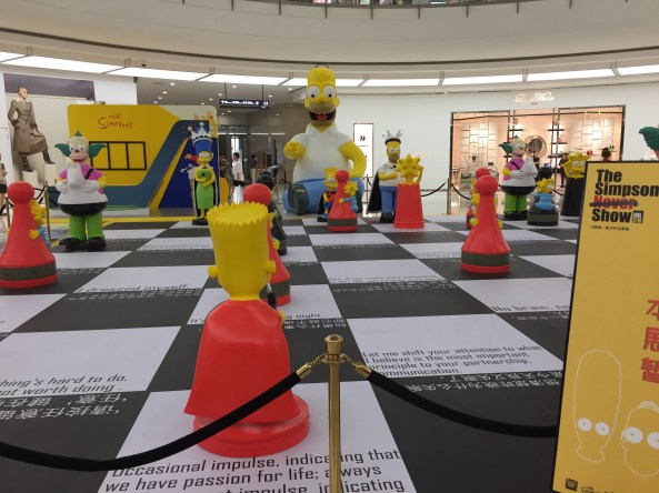 This was a big disconnect walking past Versace, Rolex, D&G, Tiffany’s, in a high-end mall only to encounter a life size chessboard of Simpson characters! Doh! The fun continued outside with humanoid bottles of Duff Beer representing various emotional states or character flaws. My favorite was ‘Surly’. God Bless America.