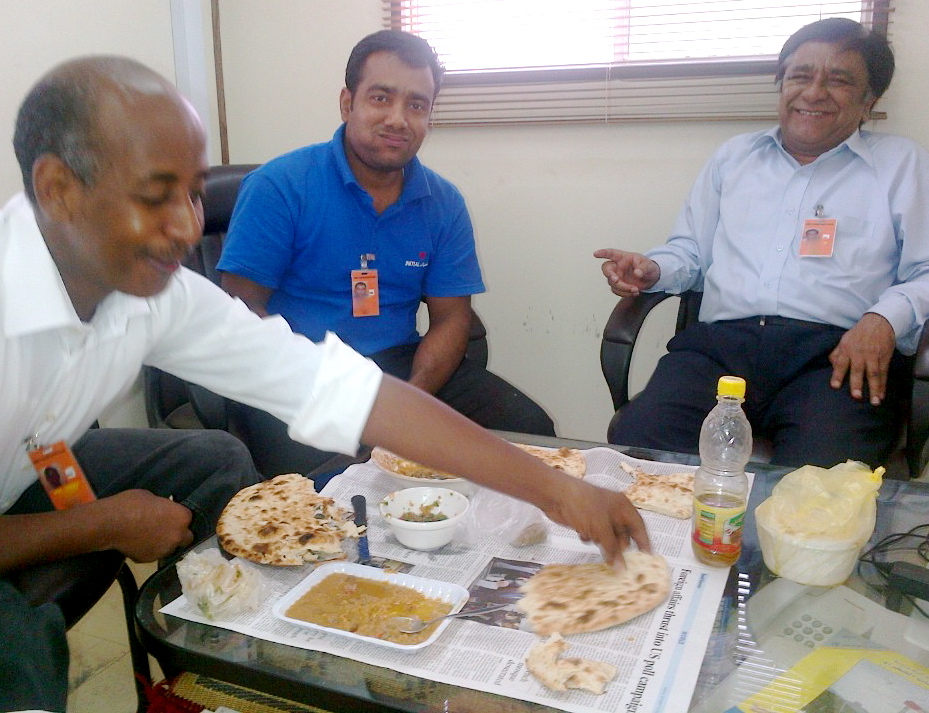 Rashid, left, Sohel, center, and Kamran, enjoying fuhl en tameez!