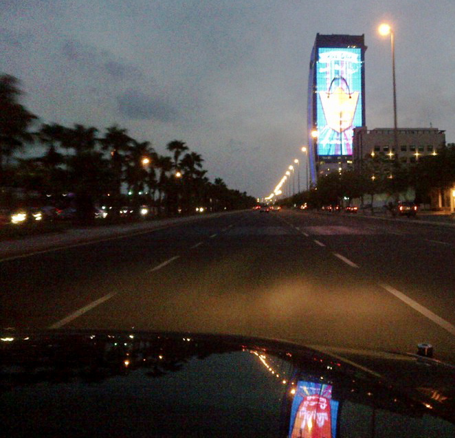 This is an impressive billboard the size of a building. It is also quite distracting!